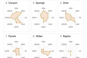 体育资讯4月11日讯 近日,有国外粉丝制作了4月10日前LCK联赛的选手数据雷达图,其中打野位置里数据最佳的是BRO的打野GIDEON与KT打野Cuzz,而BFX打野Raptor的雷达图则成了“时钟图”!