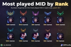 体育资讯4月13日讯 数据网站DPM.LOL统计LOL各段位出场率最高的英雄:中单阿狸、亚索,上单杰斯盖伦,打野男枪盲僧佛耶戈剑圣。