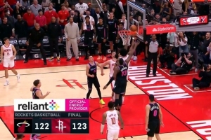 体育资讯3月22日讯 NBA常规赛,火箭123-122险胜热火。阿门最后补篮绝杀。